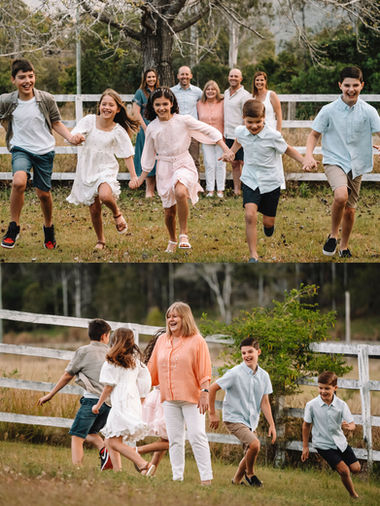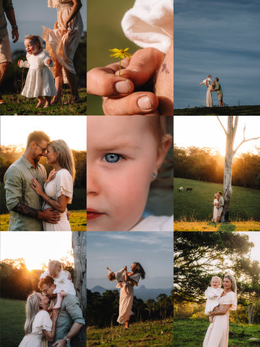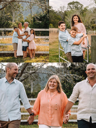 The Highvale location is set on a beautiful 60-acre property that once operated as a dairy farm, though it no longer functions as one today. The land offers breathtaking views overlooking Mount Nebo and Mount Glorious, with sunsets casting a golden glow over the cows and occasionally agitated horses roaming the paddocks. For the more adventurous families with a 4WD, we can explore different spots around the property to add variety and diversity to your session, especially if you've had a photo shoot here with me before.